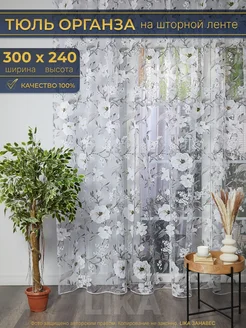 Тюль 300х240 см в спальню гостиную на кухню с рисунком