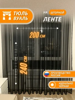 Тюль Вуаль цветной 290х250 см занавеска черная