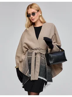 Пончо двустороннее Бохо Накидка теплая Кейп