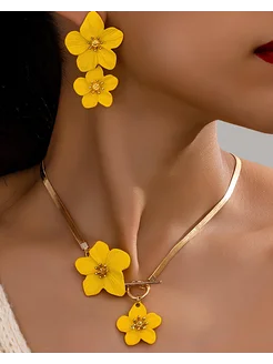 Серьги, подвеска и браслет на ногу бижутерия комплект цветы