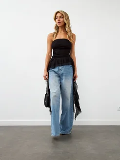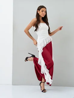 Кроп топ вечерний нарядный с воланами Корсет облегающий Y2k