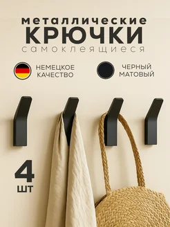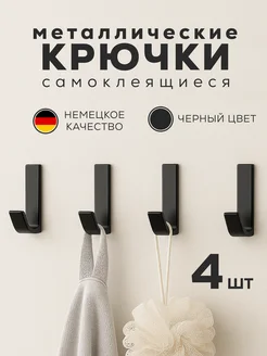 Крючки для ванной кухни прихожей самоклеящиеся черные 4 шт