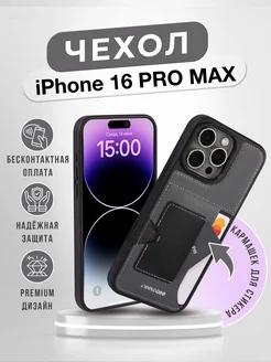 Чехол для iphone 16 pro max с карманом для карт и стикера