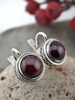 Серьги серебряные с натуральным гранатом