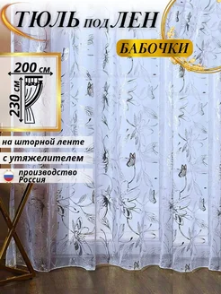 Тюль под лен готовая 200х230 в гостиную с утяжелителем