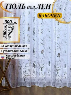 Тюль под лен готовая 300х230 в гостиную с утяжелителем