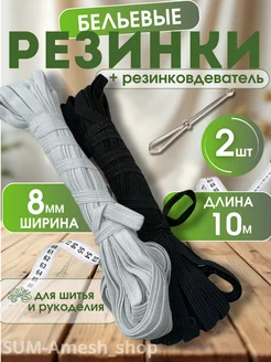Бельевые резинки 5м 8мм и резинкойвдеватель черный-белый