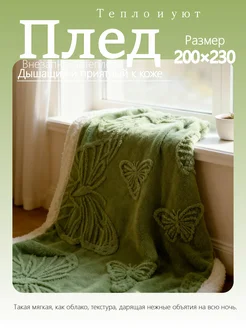 200*230 Уютный плед Бабочка, нежный зеленый цвет