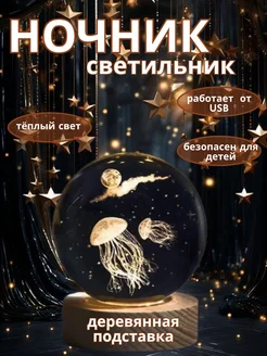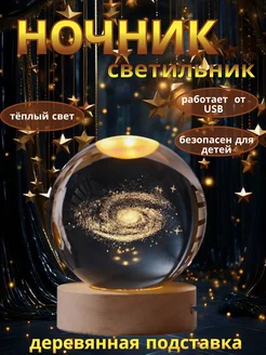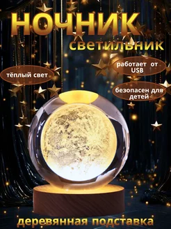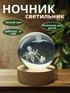 Ночник стеклянный настольный шар 3D