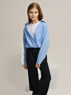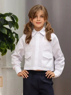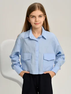 Рубашка школьная с длинным рукавом укороченная оверсайз