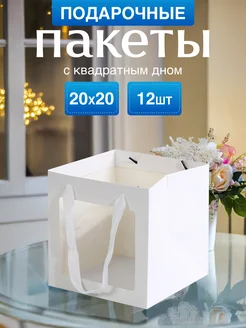 Подарочные пакеты с окном 20*20 набор 12 штук
