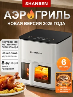 Аэрогриль электрический для дома 6л, с прозрачным окном