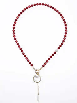 5366 Люкс чокер «Холодное солнце» красный коралл и жемчуг