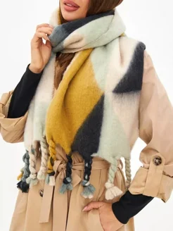 Шарф палантин кашемир. Шарф в клетку демисезонный