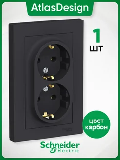 Розетка двойная с заземлением в сборе карбон