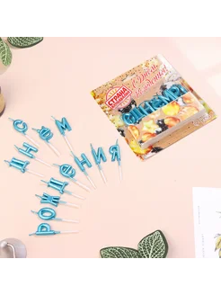 Свечи для торта "С Днём Рождения" голубые