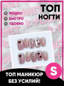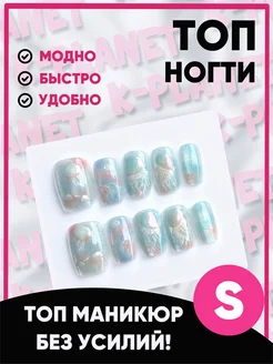 Накладные ногти с дизайном и клеем короткие ТОПнабор