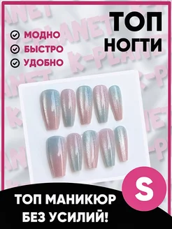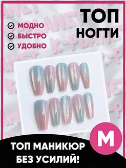 Накладные ногти с дизайном и клеем длинные ТОПнабор