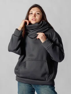 Худи оверсайз с капюшоном и воротом теплое с начесом