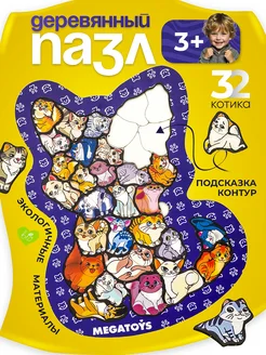Деревянные пазлы для детей, головоломка для детей котики