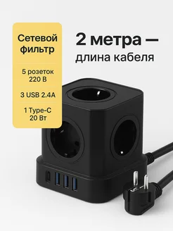 Сетевой фильтр башня 5 розеток 2500 Вт 4 USB TYPE-C