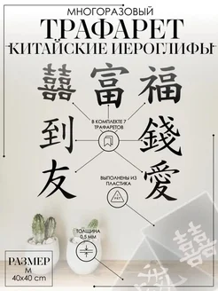 Трафареты иероглифы фэн-шуй для стен 7шт 40х40см