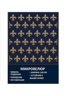 Мебельная ткань Микровелюр Золотые лилии на синем
