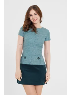Полупальто-жакет легкое демисезонное в клетку на пуговицах