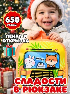 Сладкий подарок на новый год с игрушкой рюкзак кулек