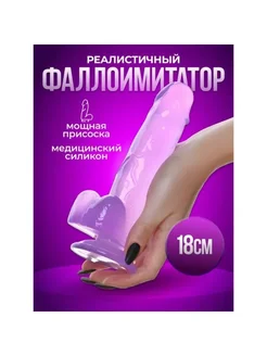 Гелевый фаллоимитатор, на присоске, 18х3,5 см, фиолетовый