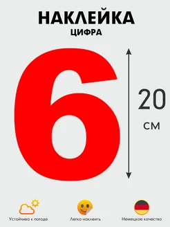 Цифра 6 красная 20 см