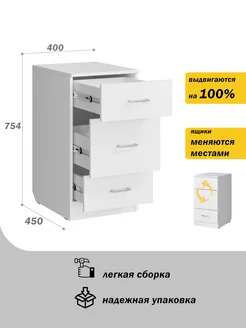 Тумба 3 ящика (Ш40*В75*Г45) Белая матовая