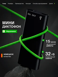 Диктофон цифровой мини для записи и прослушивания 32 гб