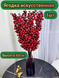 еловая ветка искусственная для декора новогодняя с ягодами
