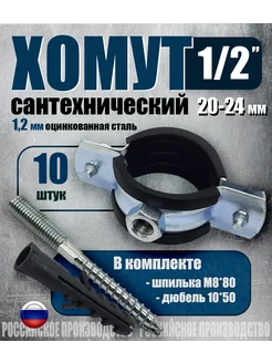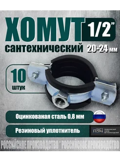 Хомут сантех. 1 2'' (20-24 мм) - 10 шт оцинков. сталь 0,8 мм