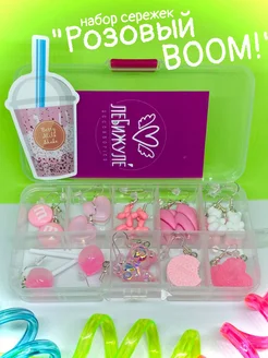 Серьги розовые набор 10 пар