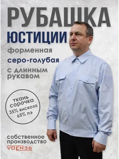 Рубашка форменная мужская дл. рукав Юстиция серо-голубая