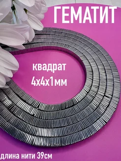 Гематит, квадрат 4х4х1 мм, бусины из натурального камня