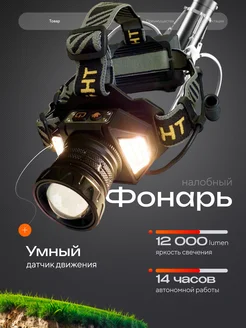 Фонарик налобный аккумуляторный с бесконтактым управлением