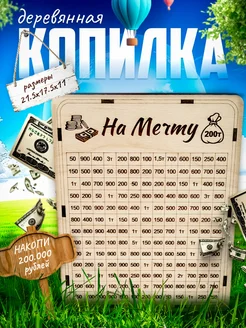 Копилка деревянная с цифрами для денег большая На Мечту 200т