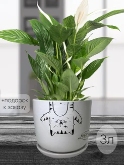Керамический горшок для цветов котик с поддоном 3 л (Мяун)