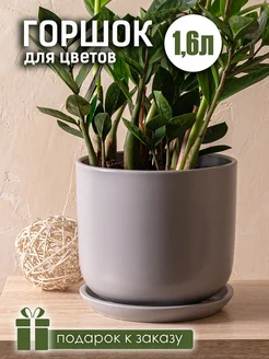 Керамический горшок для цветов с поддоном 1,6 л