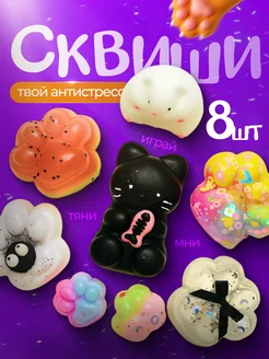 Бокс сквиш лапка котика антистресс таба набор 8 штук