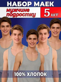 Майка мужская хлопок бесшовная серая борцовка набор 5 шт