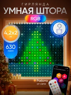 Умная гирлянда штора с пультом и приложением 4,2х2 RGB