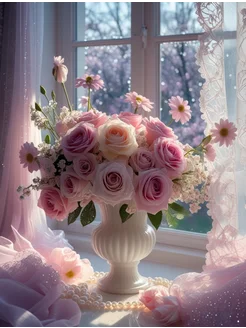 Алмазная мозаика 40х50 без подрамника Букет роз в вазе