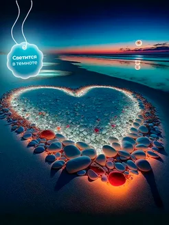 Светящаяся алмазная мозаика 40х50 без подрамника Сердце