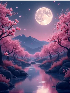 Алмазная мозаика 40х50 без подрамника Сияние луны