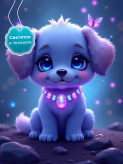 Светящаяся алмазная мозаика 40х50 без подрамника Собака
