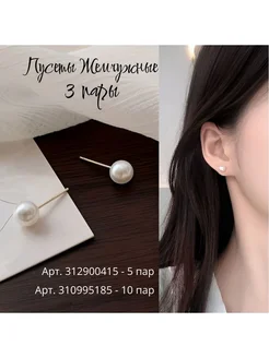 Пусеты "Жемчужинки" 3 пары, гвоздики